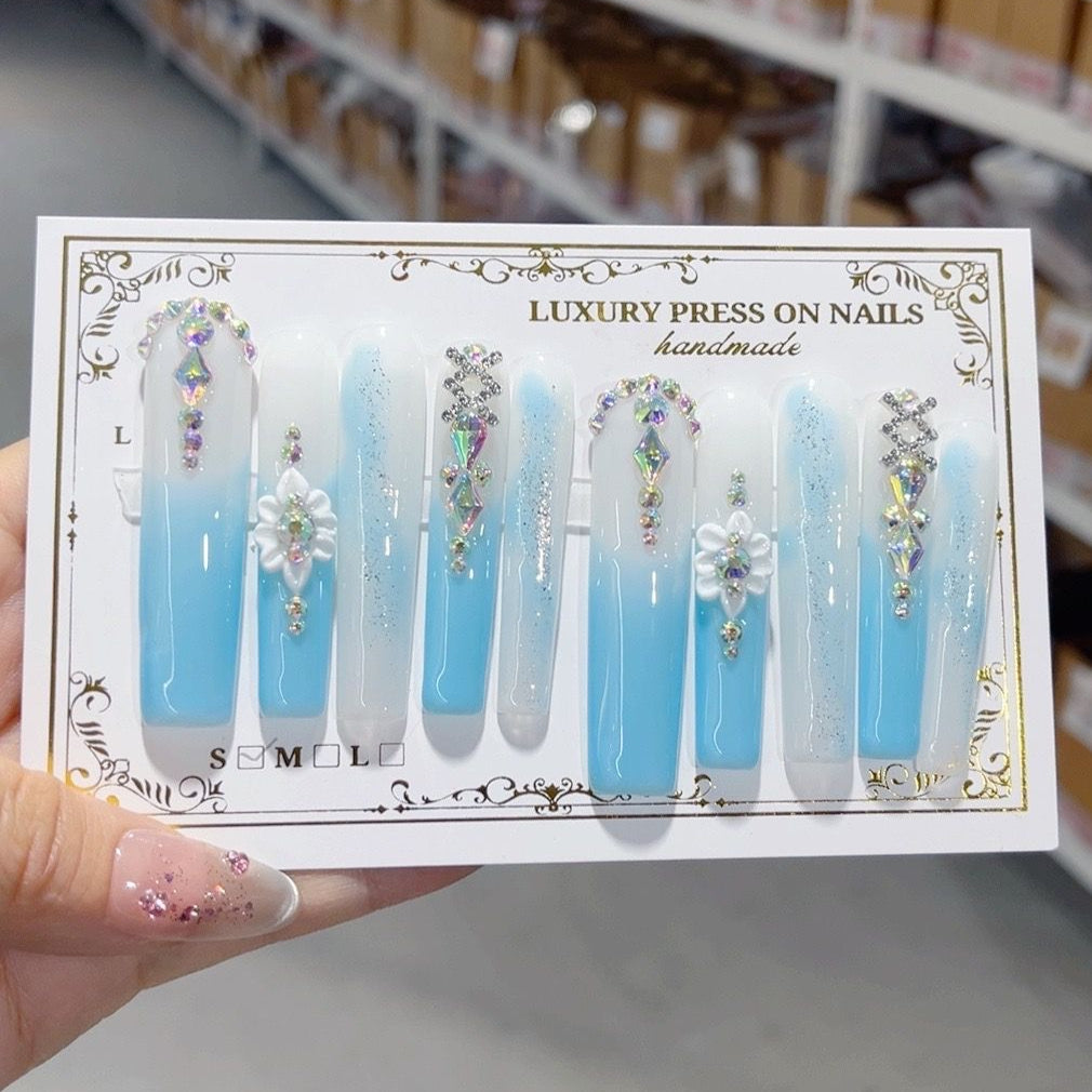 NOTE: PLEASE MEASURE YOUR NAIL SIZES BEFORE ORDERING. We don't offer a refund or return if you choose the wrong size.