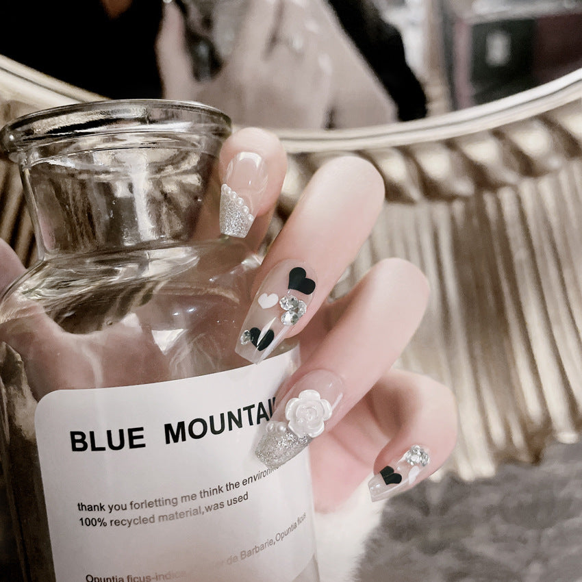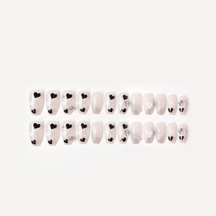 F52 Camellia black heart set with diamonds MEDIUM NAIL