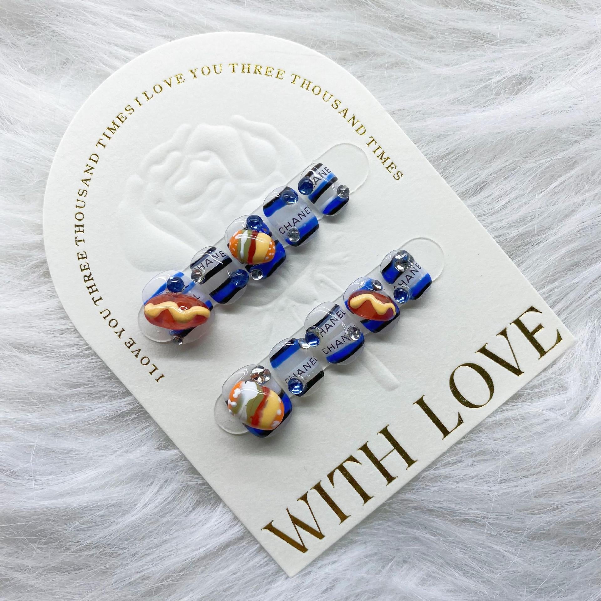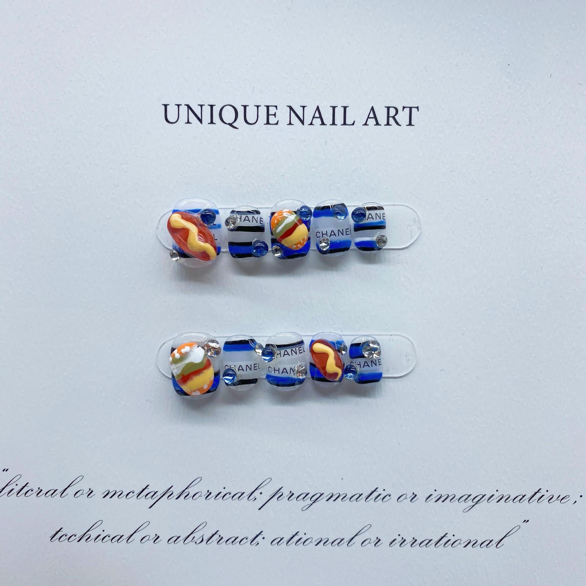 H21 BLUE CHANEL CHEESE BURGER HANDMADE NAIL