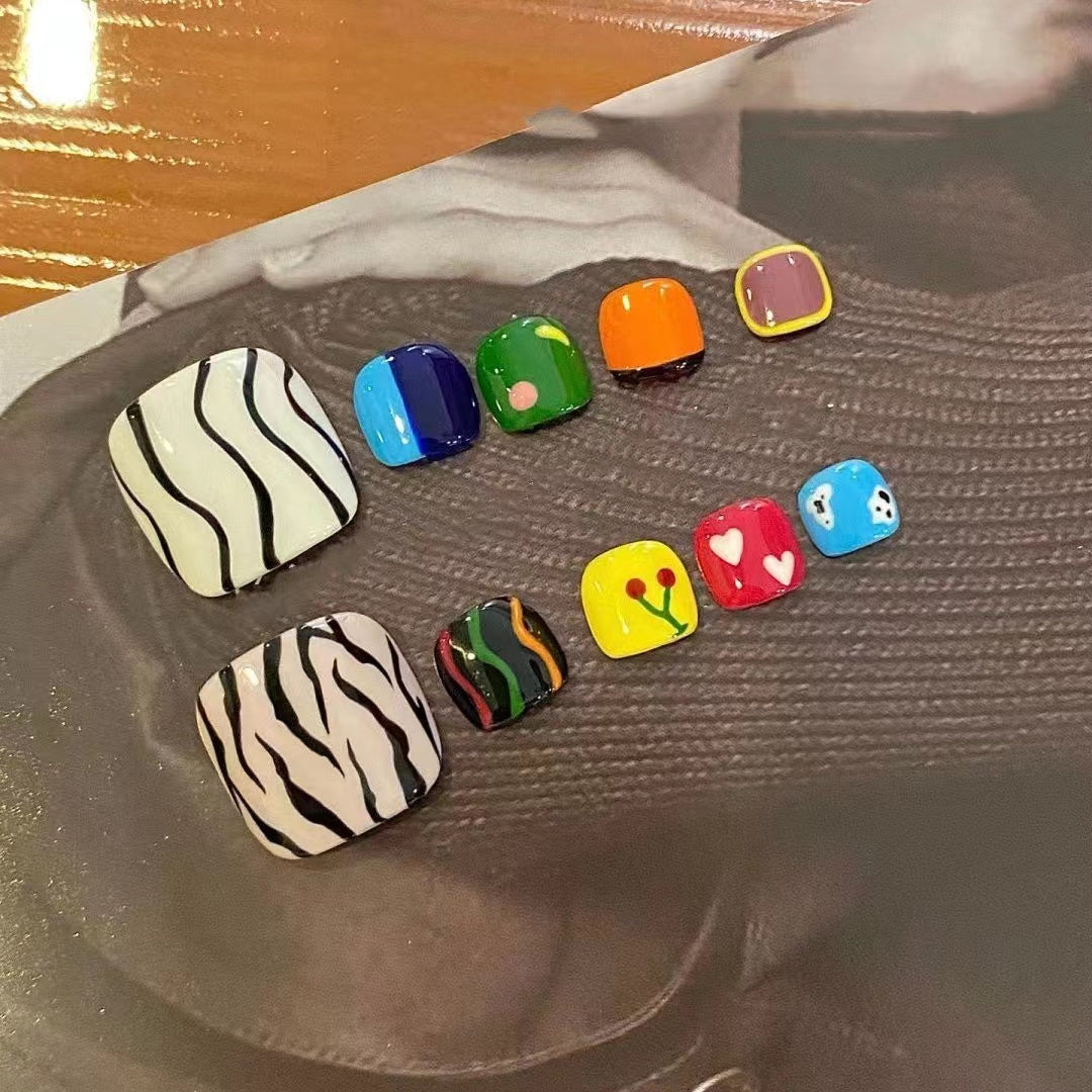 Each set has 10 pcs of Press-on nails and a Free application kit(Nail glue, Sticky tab, Nail file, and cuticle pusher).