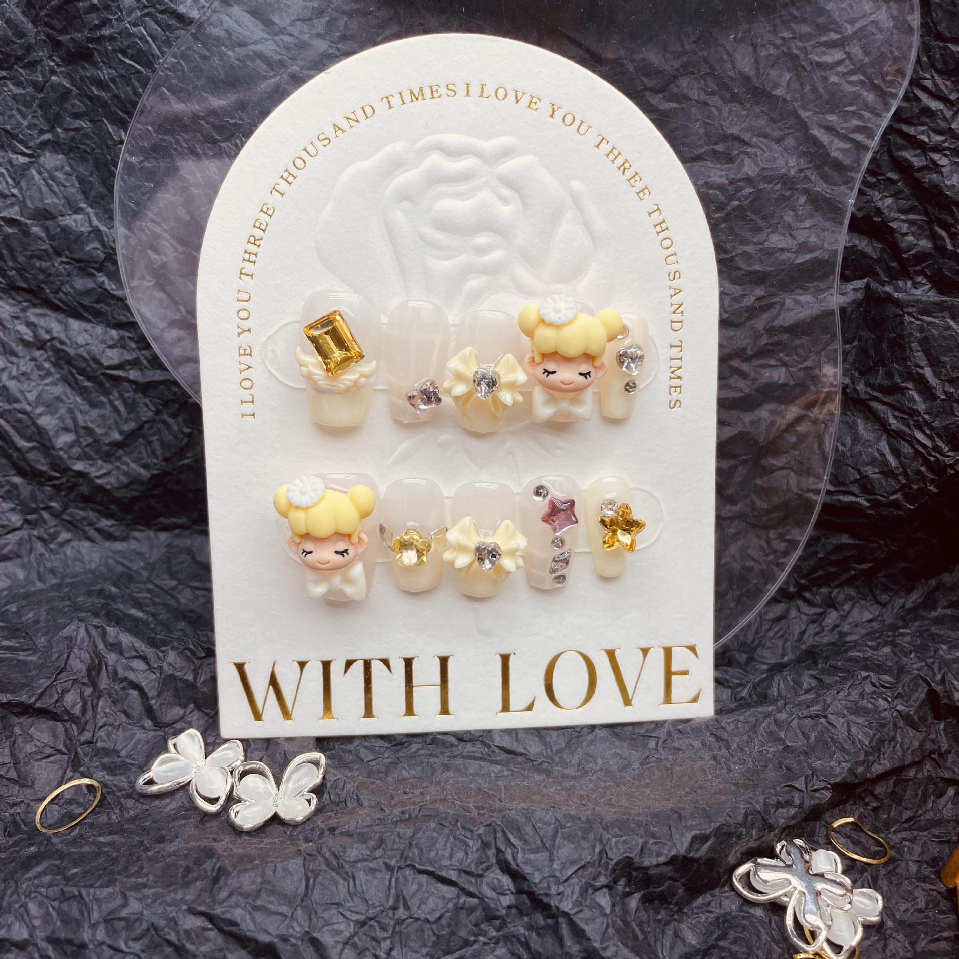H14 BANANA YELLOW LITTLE GIRL DIAMOND HANDMADE NAIL