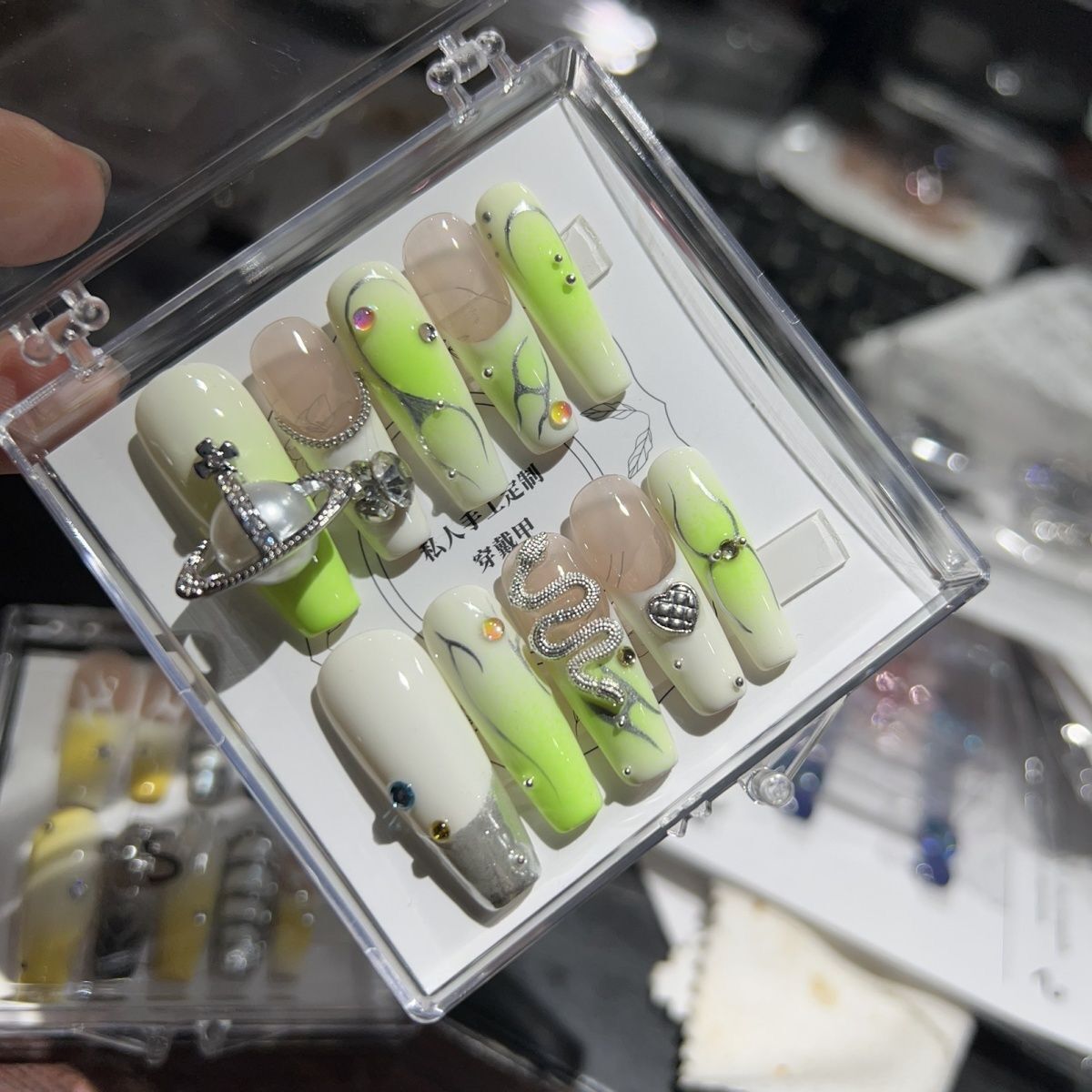 H145 Metal Style Spicy Girl Y2K Snake Green HANDMADE NAIL