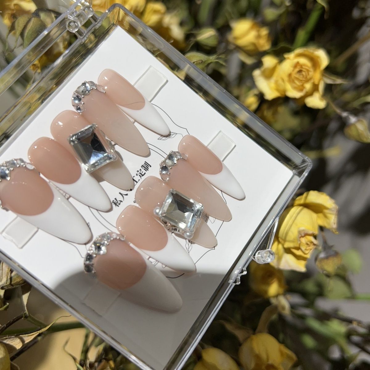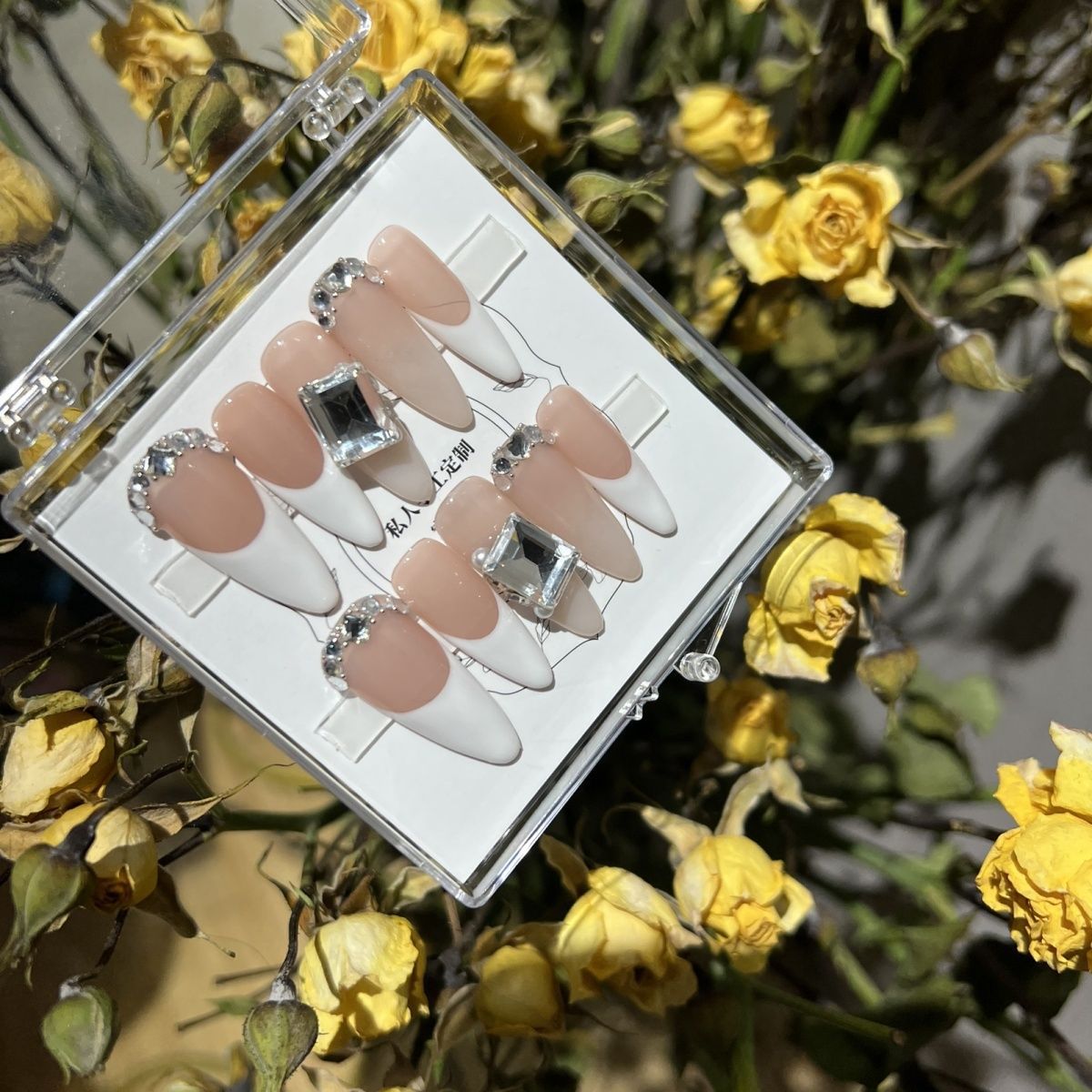 H176 FULL DIAMOND PEARL NUDE HANDMADE NAIL