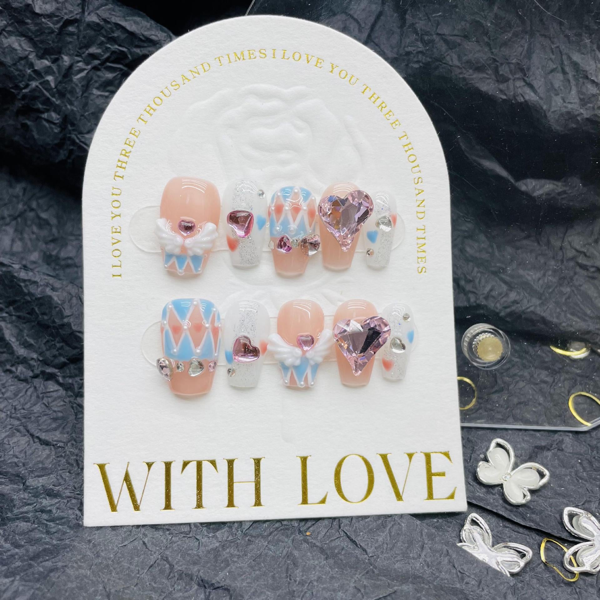 H18 CUTE ANGEL WINGS PINK DIAMOND HANDMADE NAIL