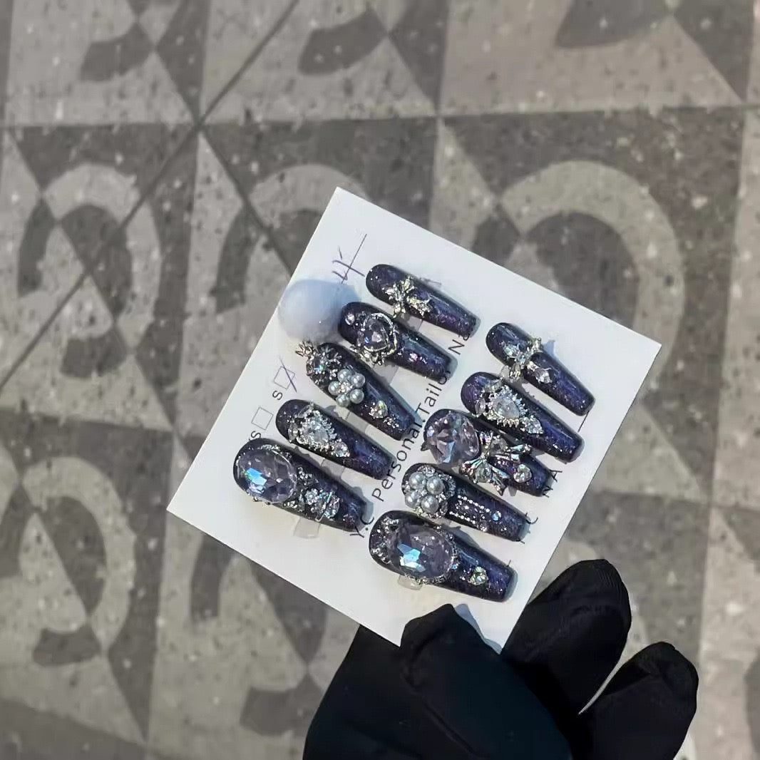 Each set has 10 pcs of Press-on nails and a Free application kit(Nail glue, Sticky tab, Nail file, and cuticle pusher).
