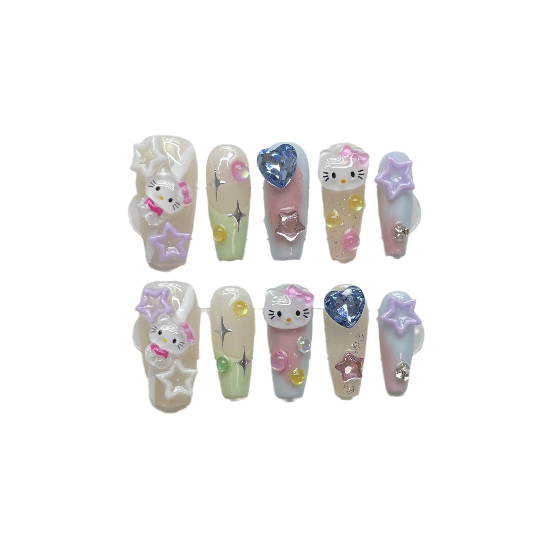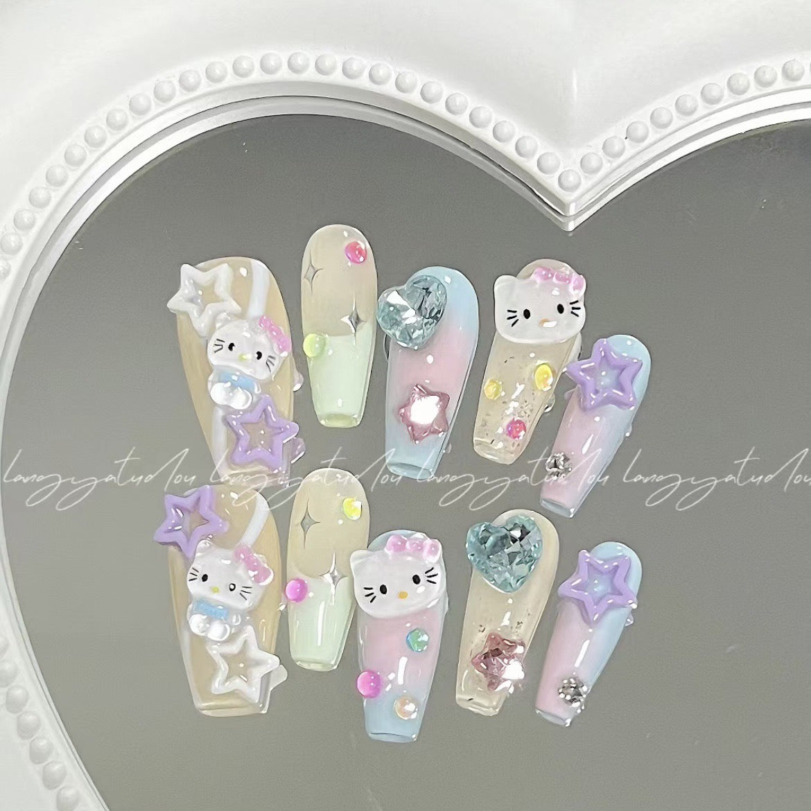HK16 RAINBOW CUTE GEM Cat HANDMADE NAIL