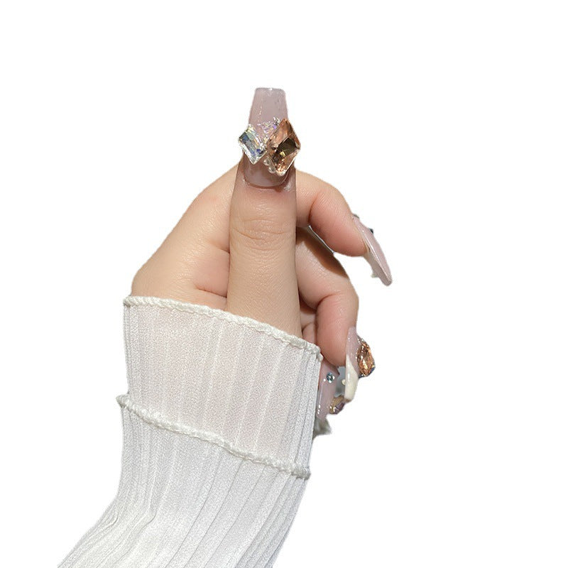 H28 NUDE PINK GOLD DIAMOND HANDMADE NAIL