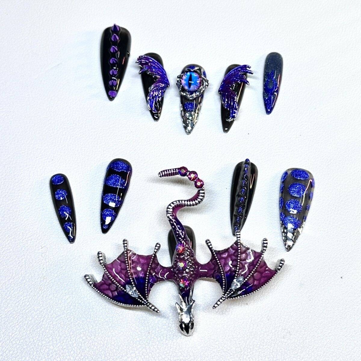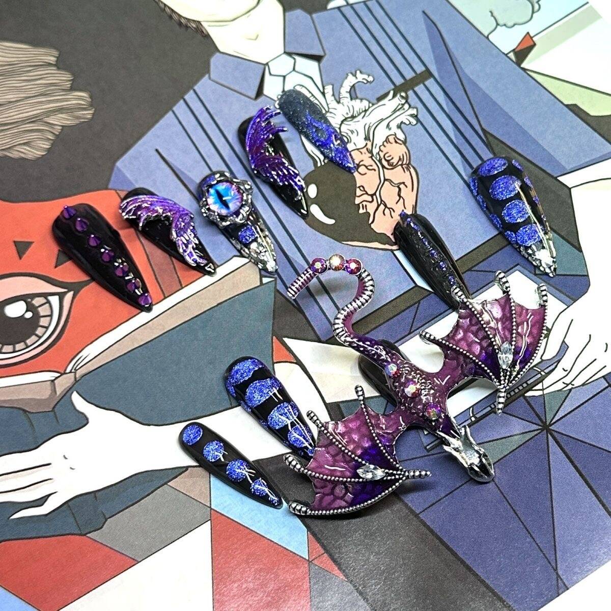 H299 Demon Purple Crystal Winged Dragon HANDMADE NAIL