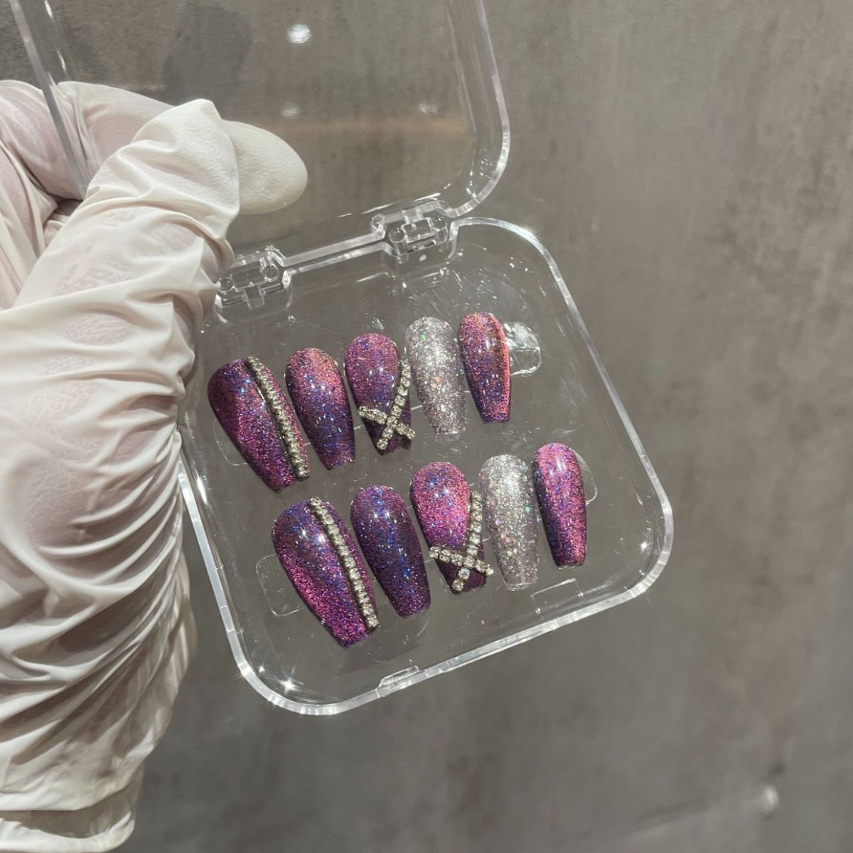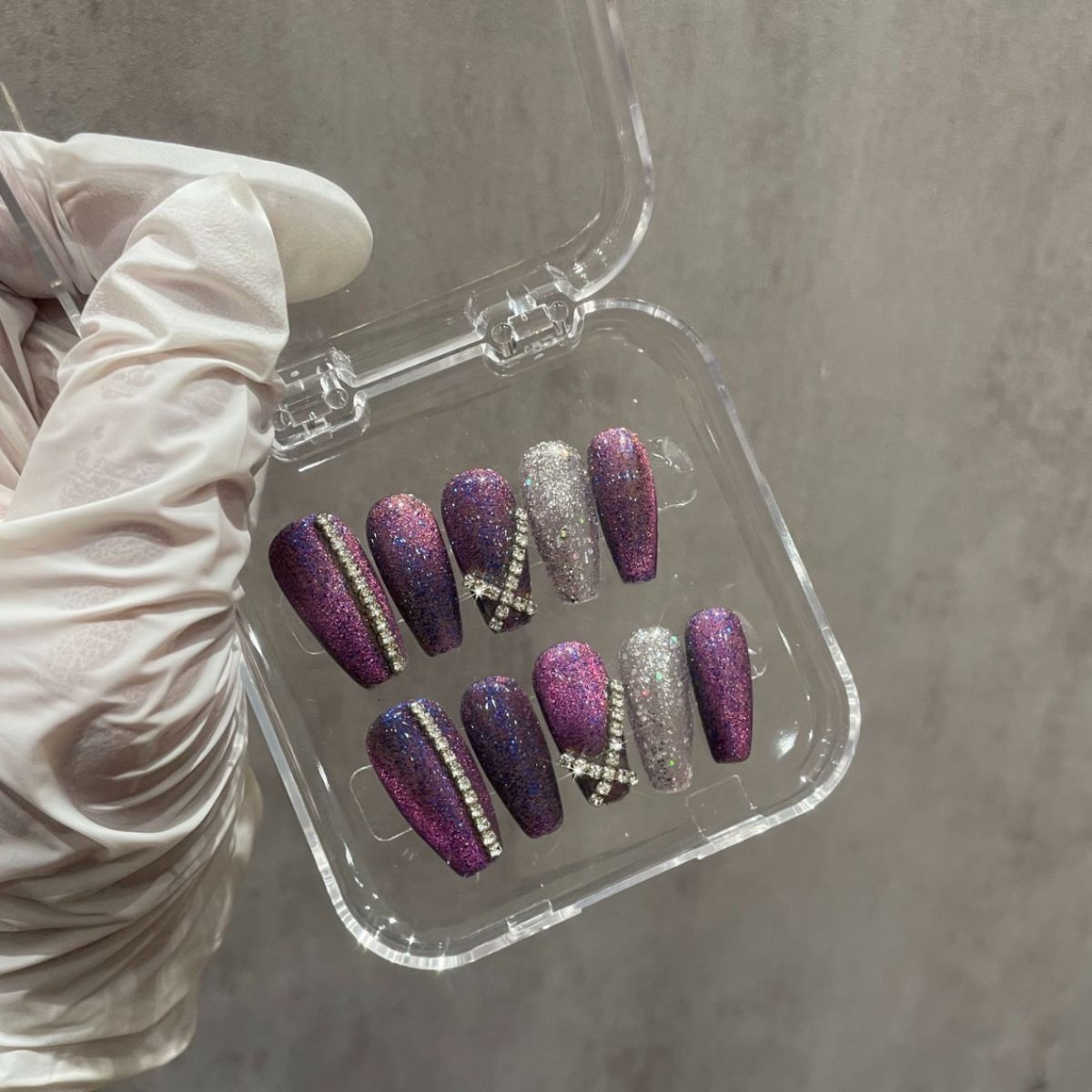 H304 Chain Cat Eye Purple HANDMADE NAIL
