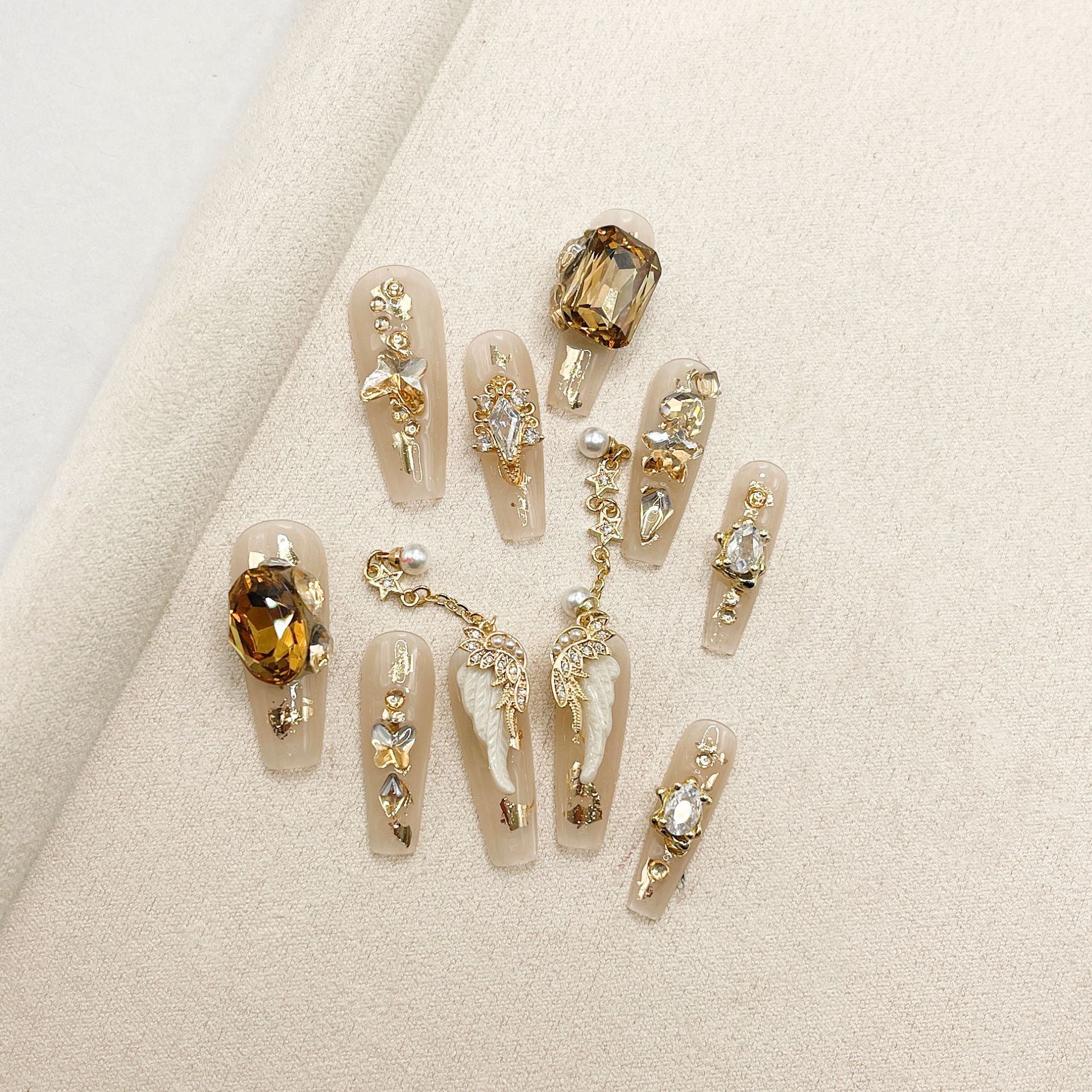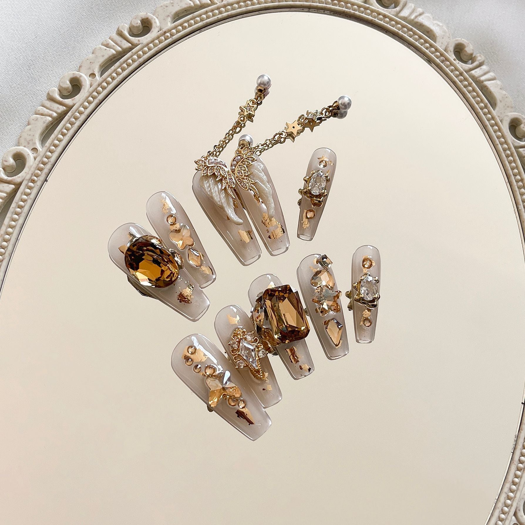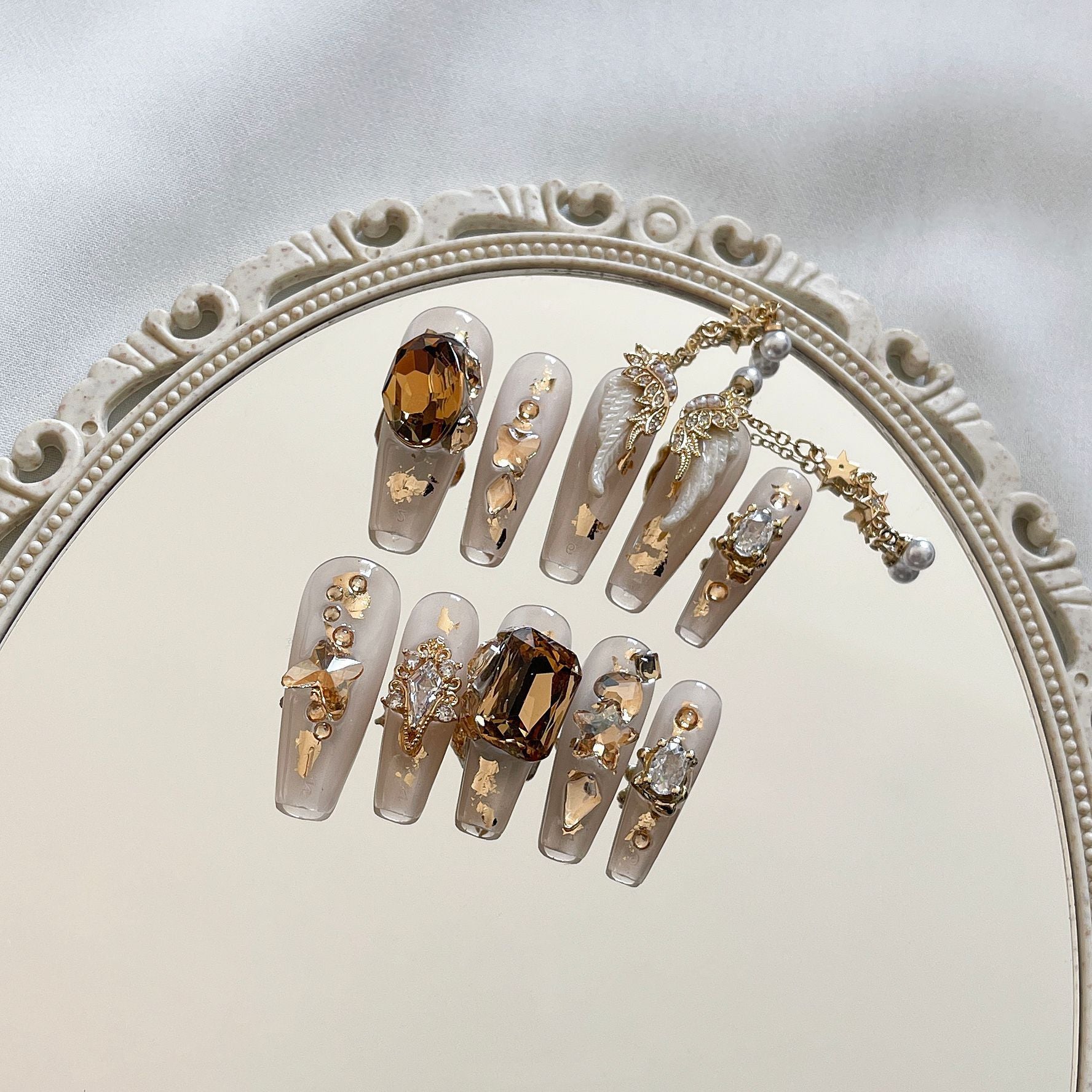 H307 Hand drawn heiress champagne diamonds HANDMADE NAIL