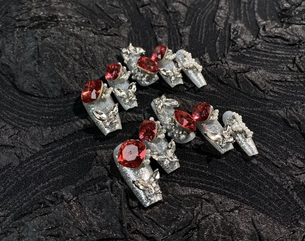 H341 Heavy Industry Fish Tail Pomegranate Ruby HANDMADE NAIL