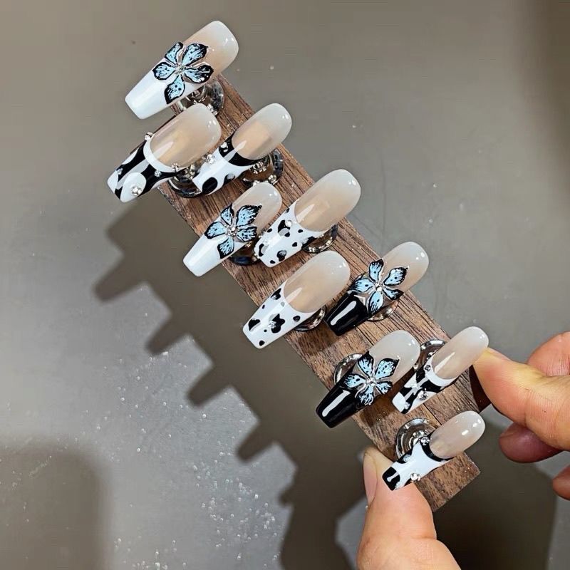 Each set has 10 pcs of Press-on nails and a Free application kit(Nail glue, Sticky tab, Nail file, and cuticle pusher).