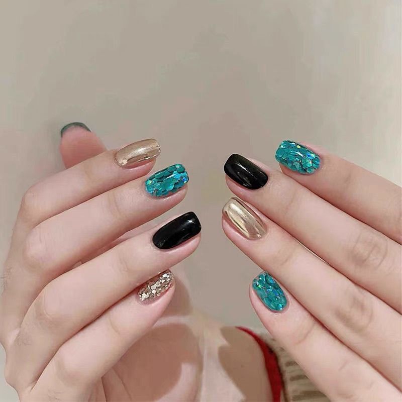 Each set has 10 pcs of Press-on nails and a Free application kit(Nail glue, Sticky tab, Nail file, and cuticle pusher).