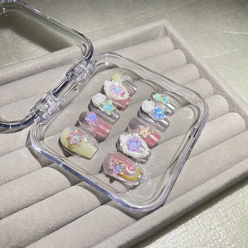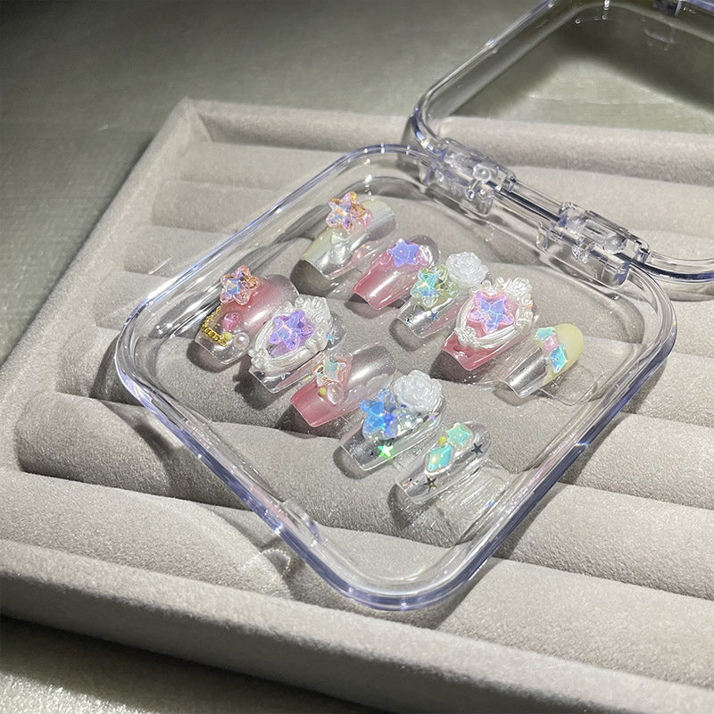 H38 SUMMER TRANSPARENT STAR & MOON HANDMADE NAIL