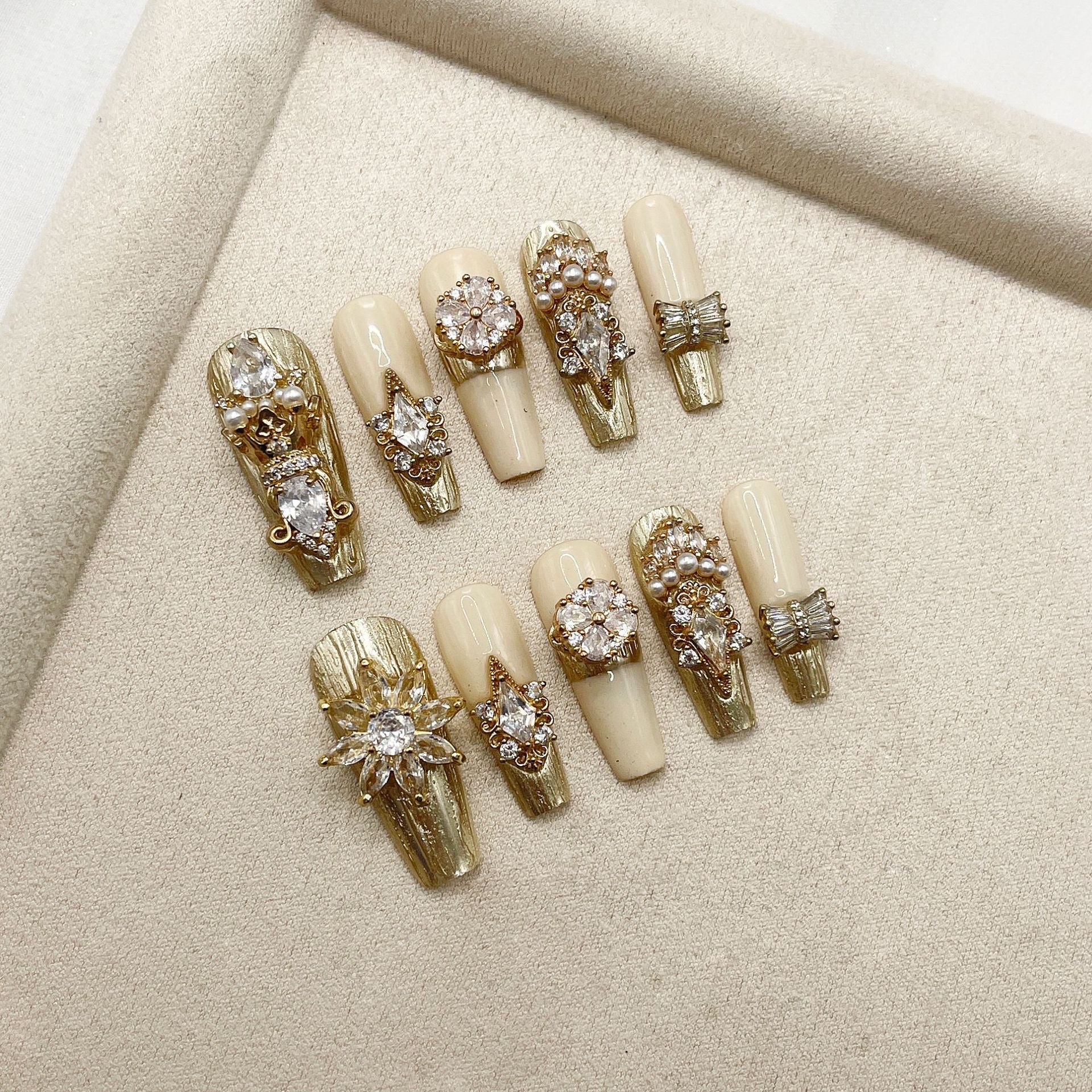 H383 Sparkling Champagne and Brilliant Diamonds HANDMADE NAIL