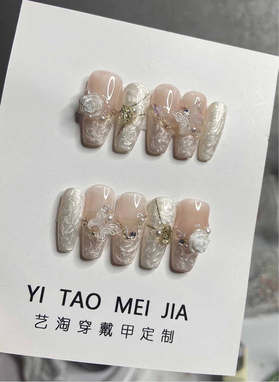 Each set has 10 pcs of Press-on nails and a Free application kit(Nail glue, Sticky tab, Nail file, and cuticle pusher).