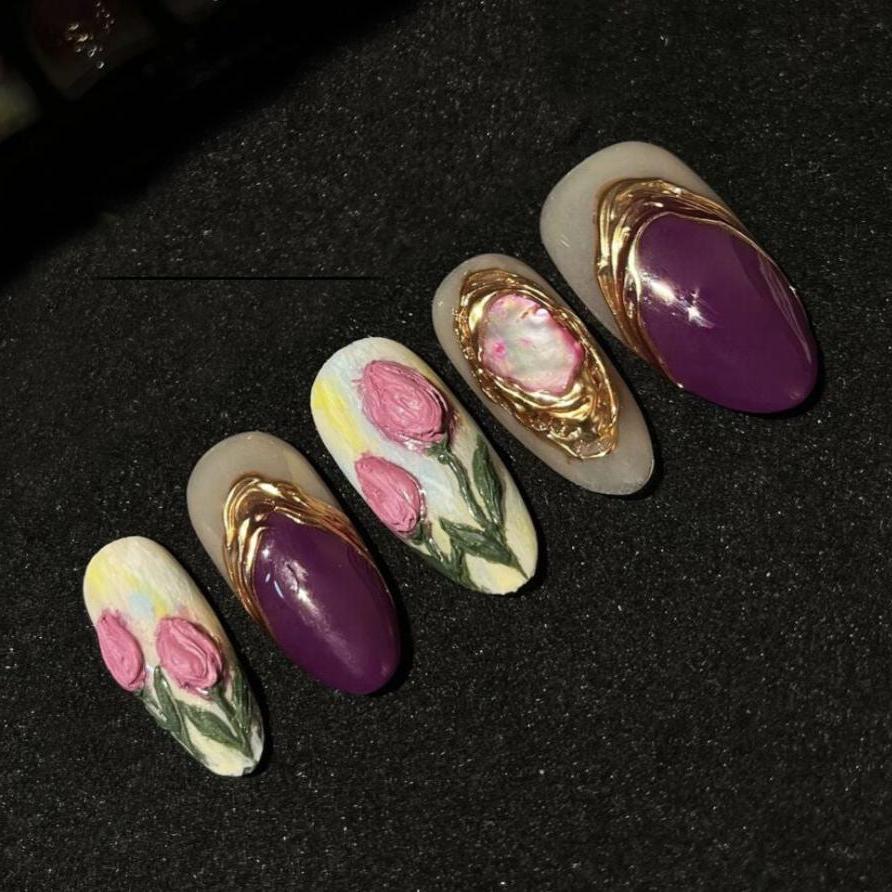 H400 Romance of Purple Tulip HANDMADE NAIL
