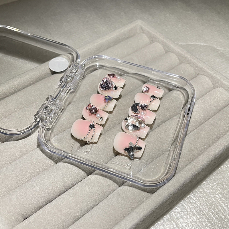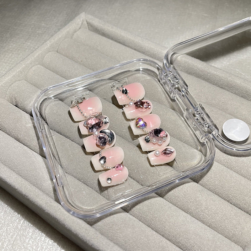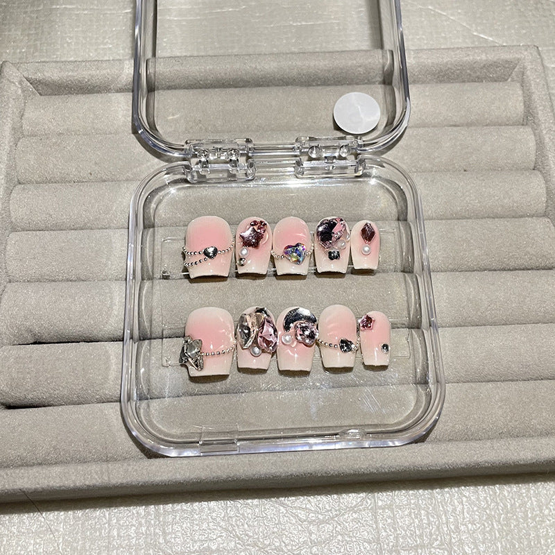 H43 NUDE PINK STAR GEM HEART HANDMADE NAIL