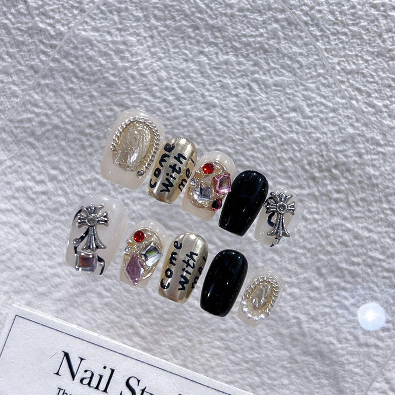 H56 LUXURY HEAVY METAL GEM HANDMADE NAIL