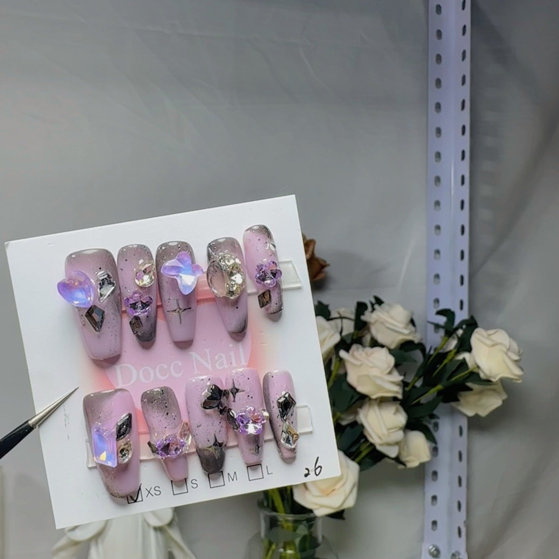 H60 SYRINGA OBLATA HEART STAR DIAMOND HANDMADE NAIL
