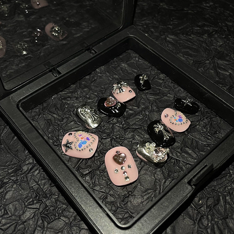 H65 GLIITER LUXURY STAR HEART HANDMADE NAIL