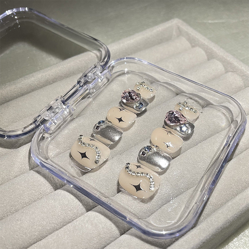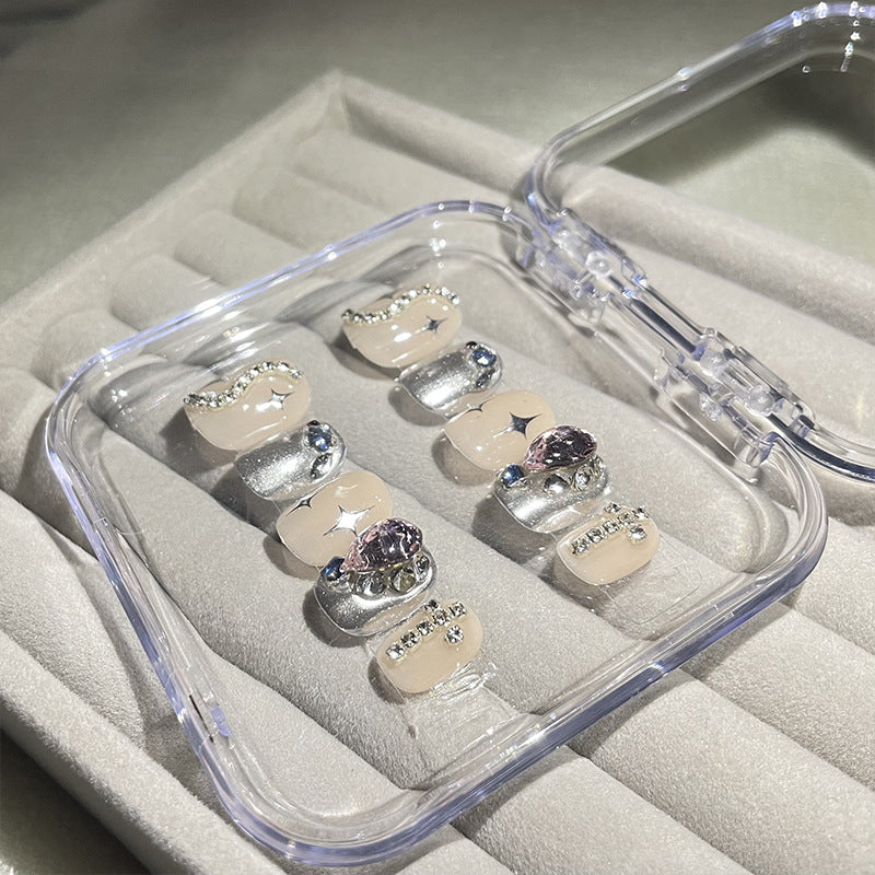 Each set has 10 pcs of Press-on nails and a Free application kit(Nail glue, Sticky tab, Nail file, and cuticle pusher).
