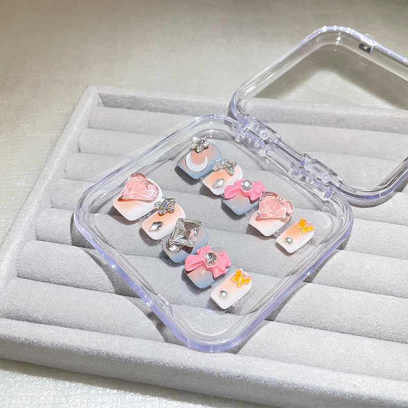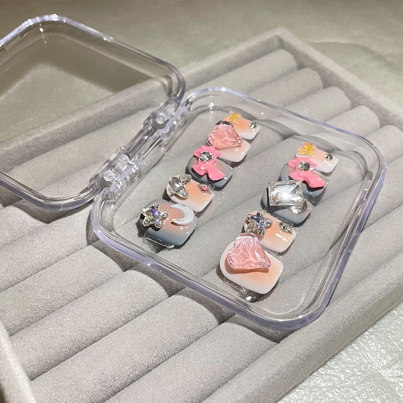 H70 NUDE HEART STAR BOW HANDMADE NAIL