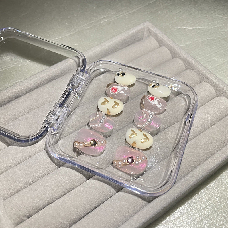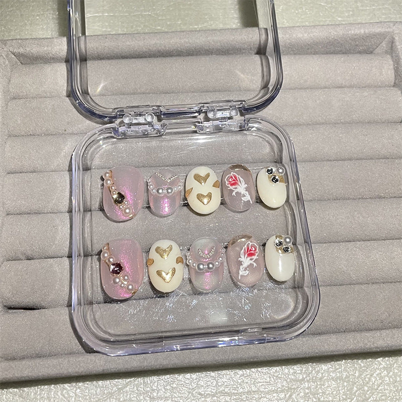 H71 BABY PINK PEARL HEART ROSE HANDMADE NAIL