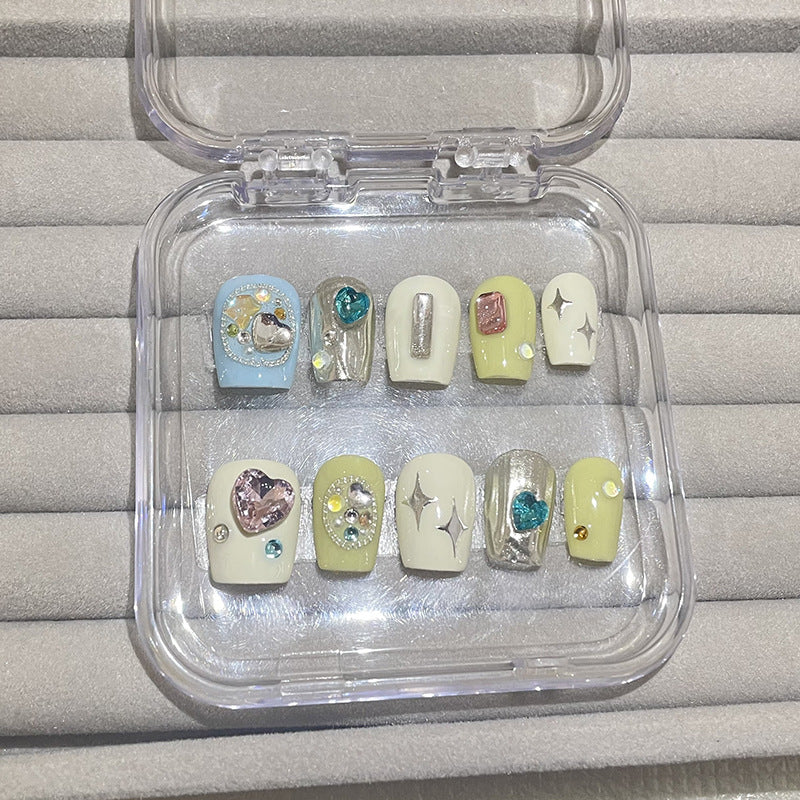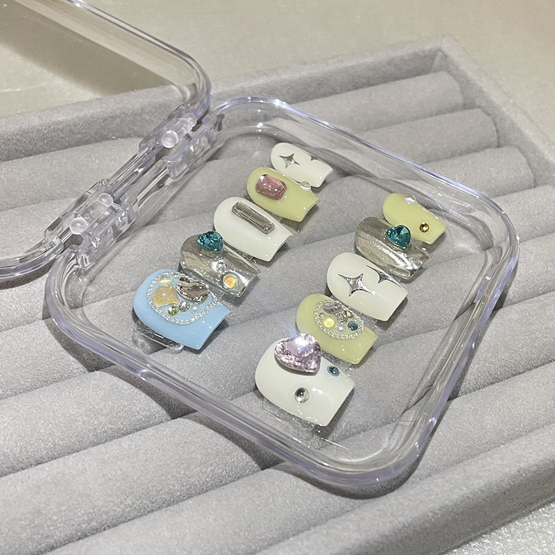 H76 RUBY HEART BLUE HEART SILVER HEART HANDMADE NAIL