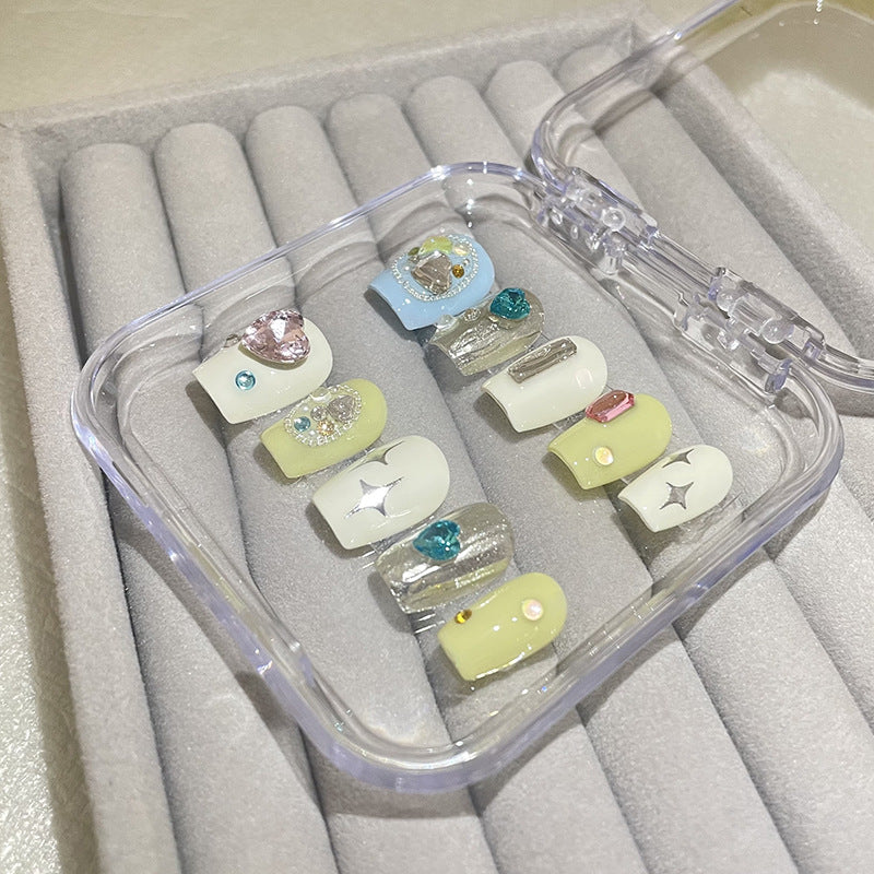 Each set has 10 pcs of Press-on nails and a Free application kit(Nail glue, Sticky tab, Nail file, and cuticle pusher).