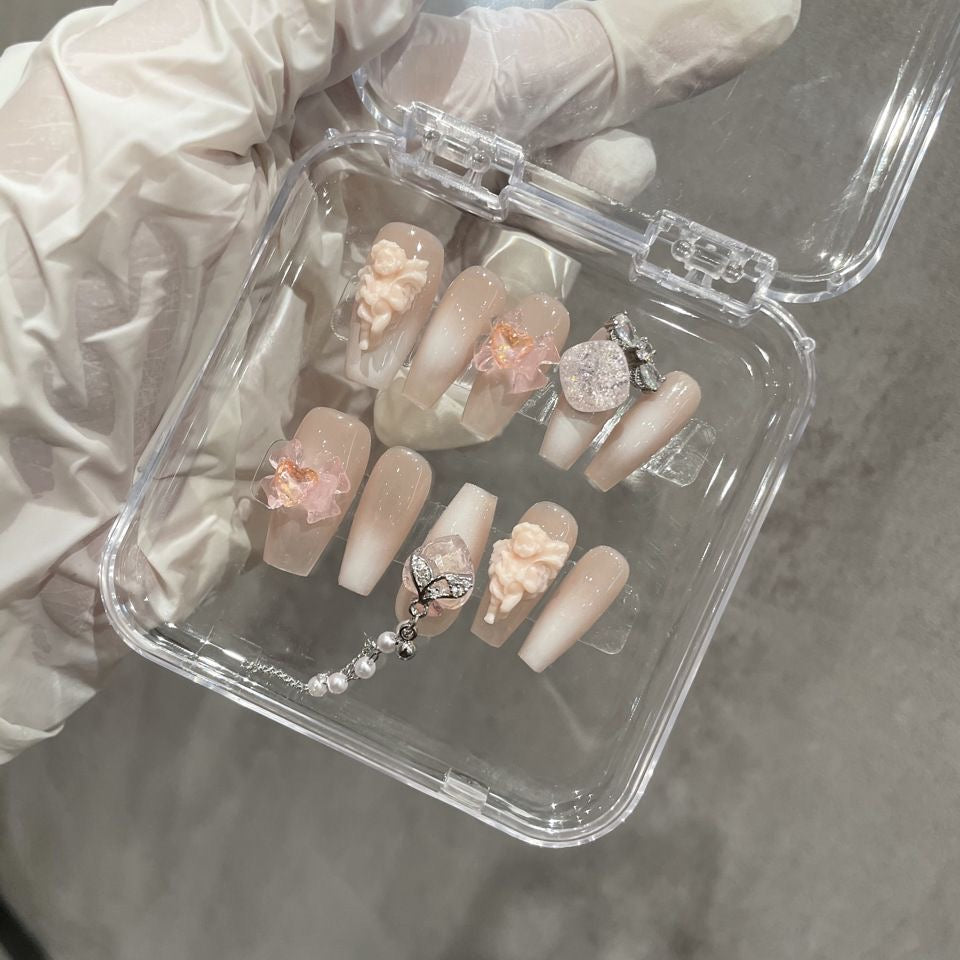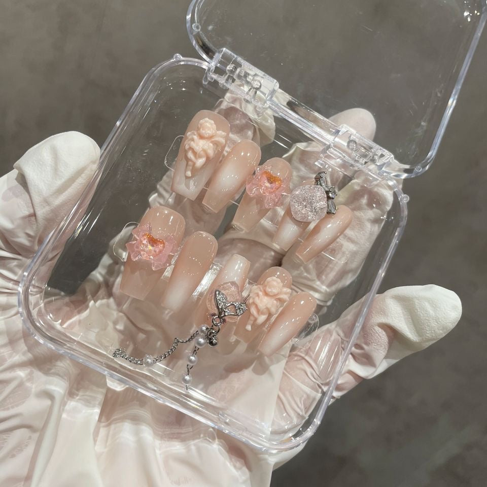 Each set has 10 pcs of Press-on nails and a Free application kit(Nail glue, Sticky tab, Nail file, and cuticle pusher).