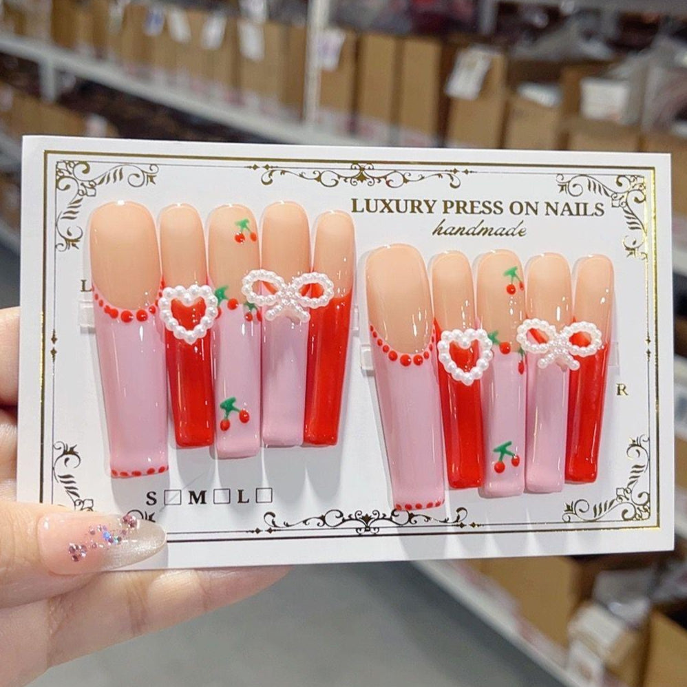 Each set has 10 pcs of Press-on nails and a Free application kit(Nail glue, Sticky tab, Nail file, and cuticle pusher).