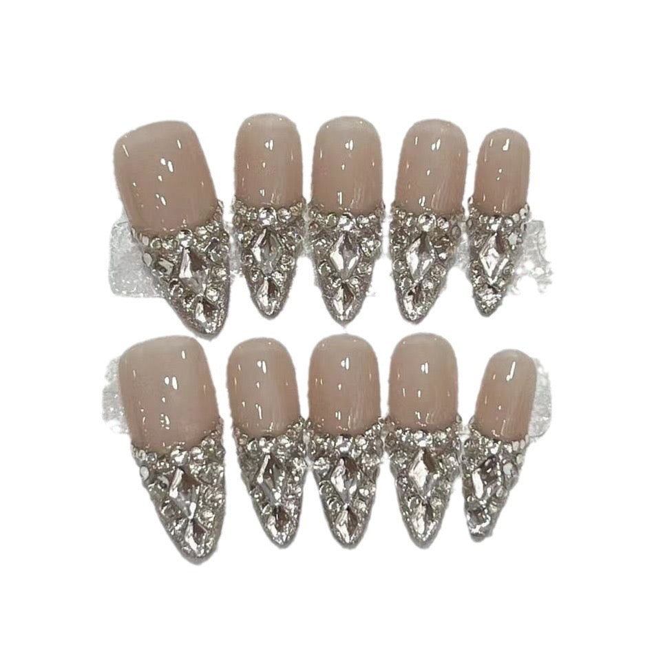 Each set has 10 pcs of Press-on nails and a Free application kit(Nail glue, Sticky tab, Nail file, and cuticle pusher).