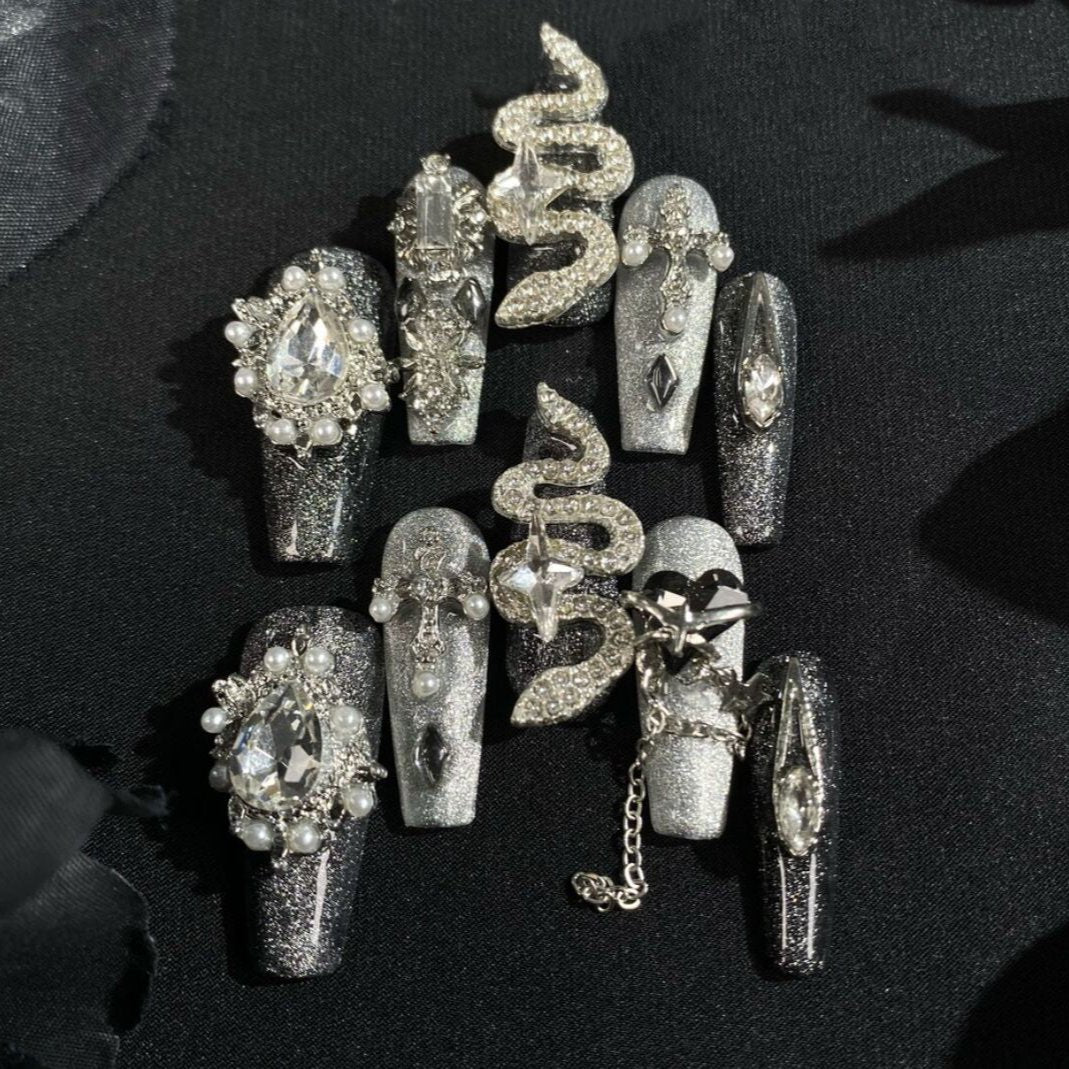 HD4 Scorpio Black Silver Snake Cat Eye HANDMADE NAIL