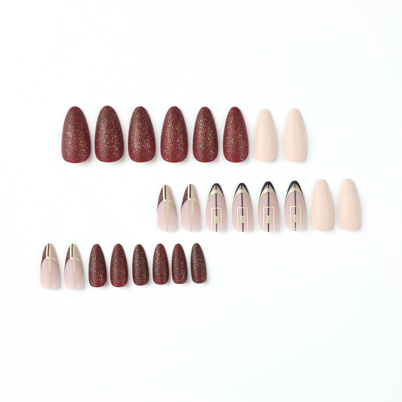 M33 FROSTING RED BLACK GOLD CROSS LINE MEDIUM NAIL