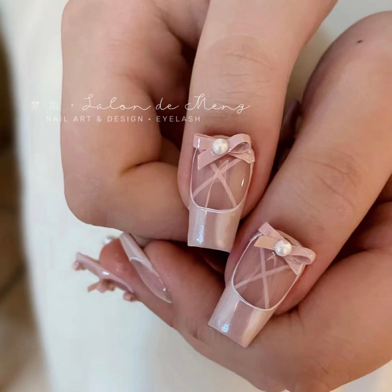 H129 BALLET SHOES BOW HANDMADE NAIL
