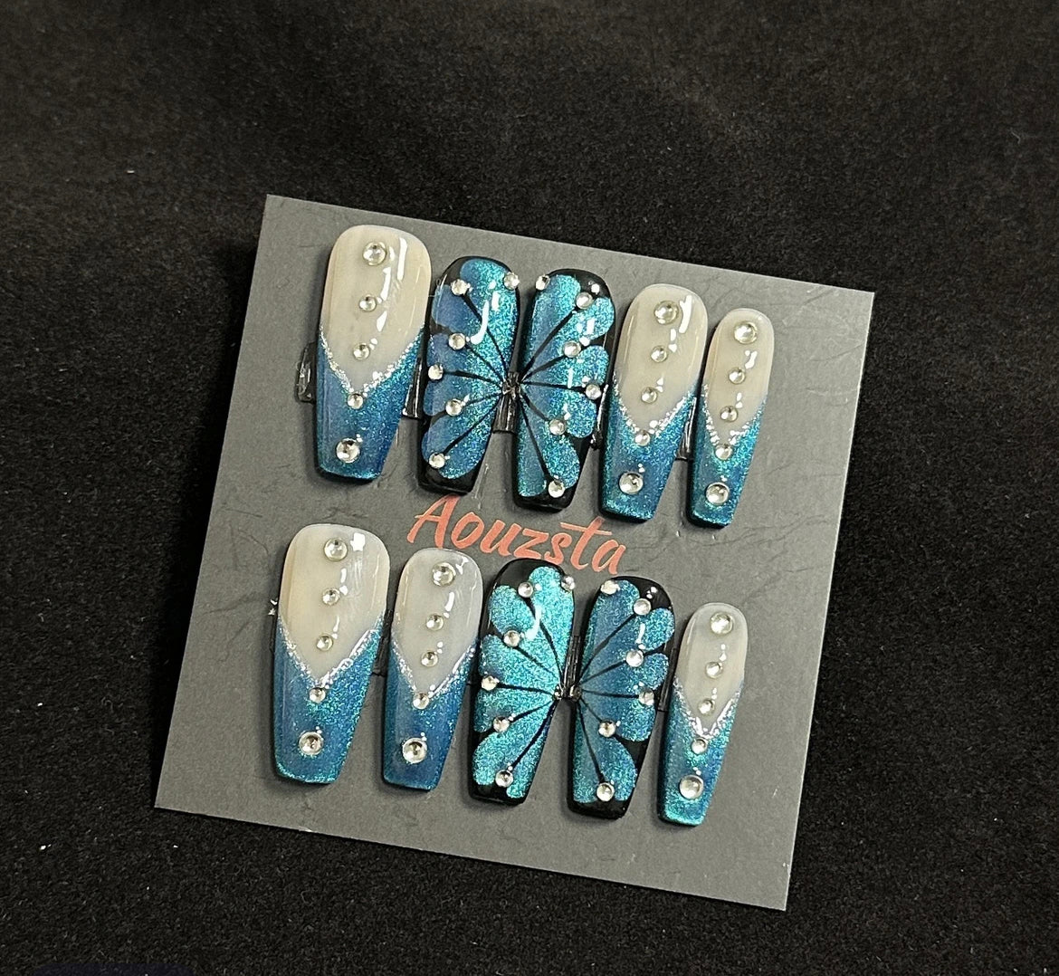 Each set has 10 pcs of Press-on nails and a Free application kit(Nail glue, Sticky tab, Nail file, and cuticle pusher).