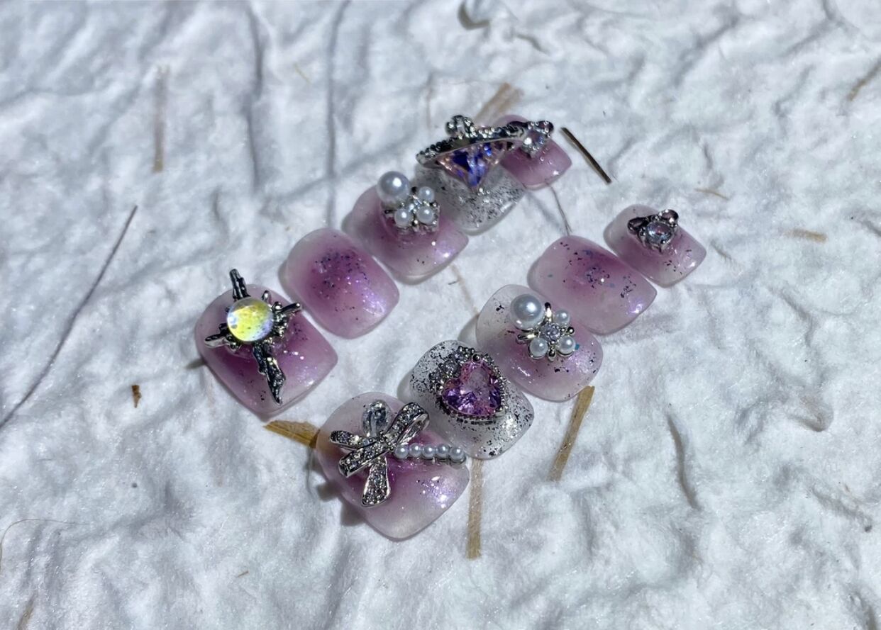 Each set has 10 pcs of Press-on nails and a Free application kit(Nail glue, Sticky tab, Nail file, and cuticle pusher).
